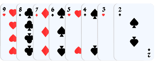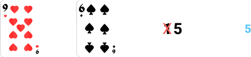 例如,牌面點數之和為15,則計作5;牌面點數總和為19,則計作9,以此類推。也就是說,在總點數達到10以後,將會自動放棄十位數上的數位,以個位數的數值來計總點數,只有下注到總點數最接近9的一方,就算贏。