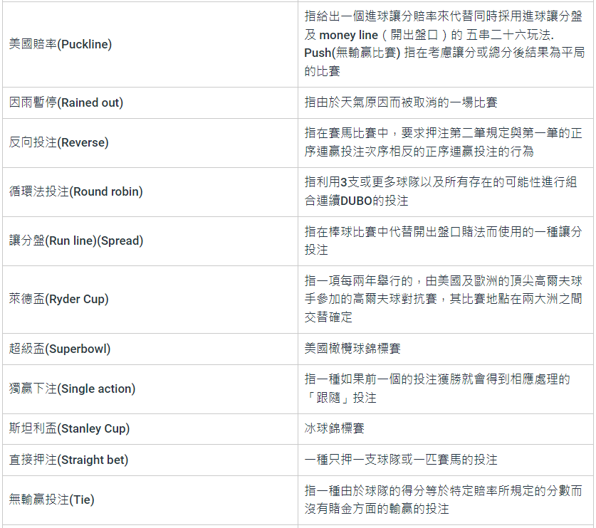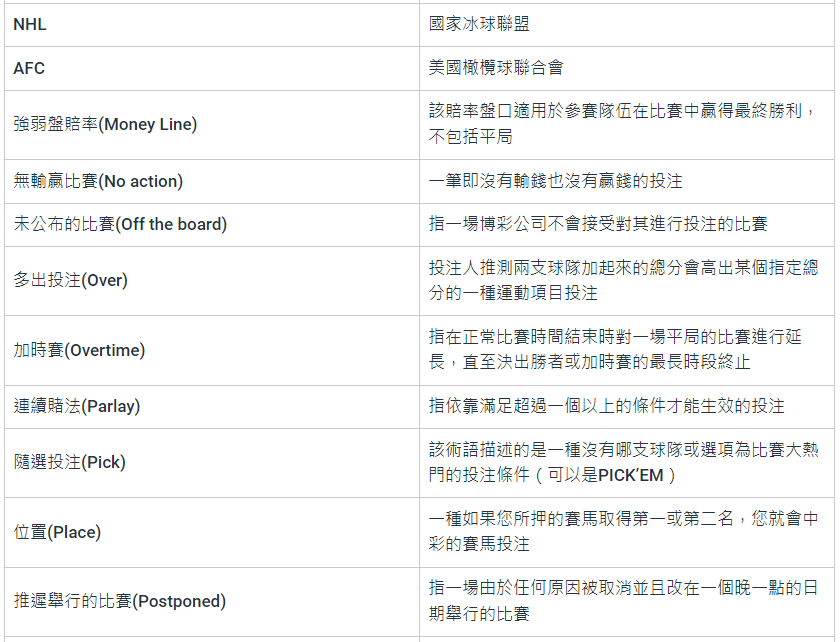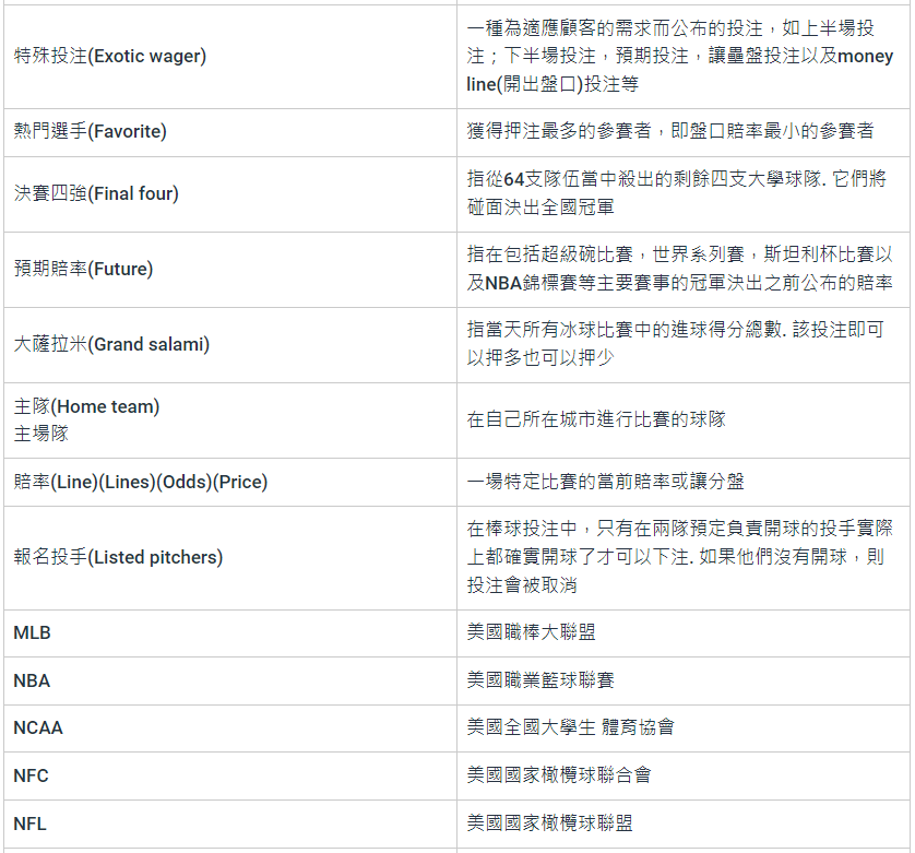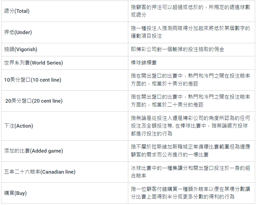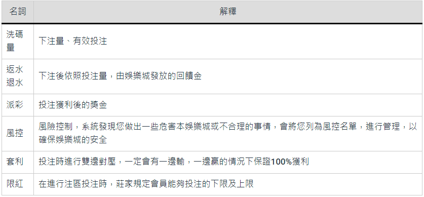 娛樂城術語通用名詞