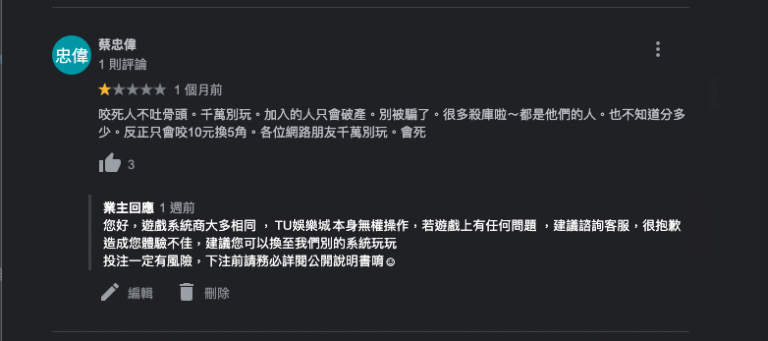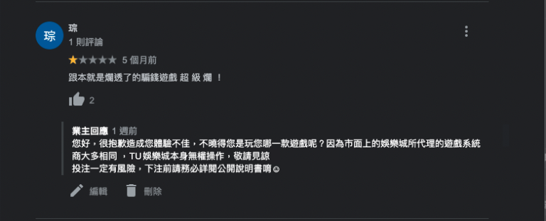 任何一間娛樂城都可能會收到負評,有時候這可能是其他娛樂城的操作,但娛樂城對每一位客戶的反饋都持開放態度,並告知可能的情況,引導客戶向客服端通報問題,以便更好地了解客戶的需求並進行相應的改善。『其實每一家娛樂城遊戲代理商都大同小異,遊戲內的任何機率或是操作,娛樂城本身是無法調整的』,這是大部分人都不知道的問題,所以會有這樣的反應也是非常正常的,