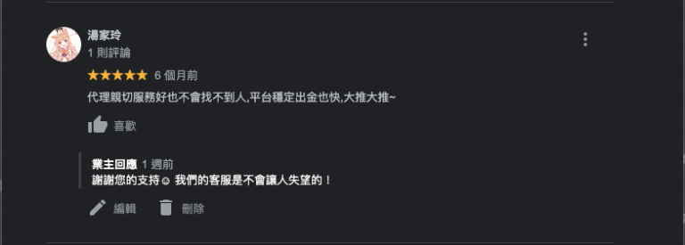 - 吸收建議:顧客的反饋在任何行業都非常重要,不論是好的建議還是負評,都應該被認真對待。金合發娛樂城 特別重視顧客的意見,我們透過開會和討論的方式,收集負評並將其視為下次改進的重點。我們以積極和良好的態度回應每一位顧客。