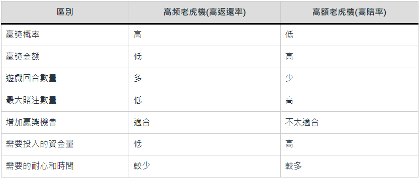 相比之下,高額老虎機的贏獎金額通常比較高,但贏獎的概率較低。這意味著玩家可能需要投入更多的資金和時間,才能贏得較高的獎金。