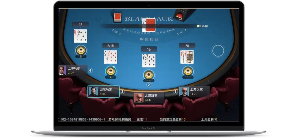 - 發牌:所有玩家下注完成後,系統向每位玩家發兩張明牌,在給莊家發兩張手牌,第一張牌是明牌,第二章是暗牌。