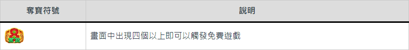 免費遊戲期間,只要出現任意四個奪寶符號,就能